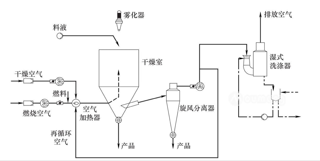 噴霧干燥機的開式循環流程